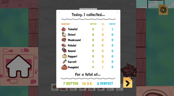 During the second half of the run, you must feed as many people as possible. The amount of soup and time you have during this portion of the run depends on the quantity and quality of the ingredients you've collected. Try to get as far as possible!